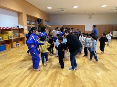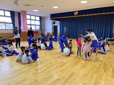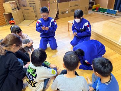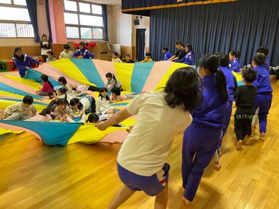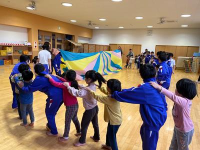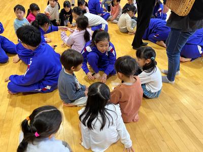 5年生は神山認定こども園に出向き、5歳児さんと交流しました。ふれあい遊びや名札作り、パラバルーンを通して、どんどん距離が近づいたようです。次回は1月に2度目の交流が予定されています。再会が楽しみですね。