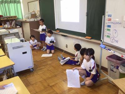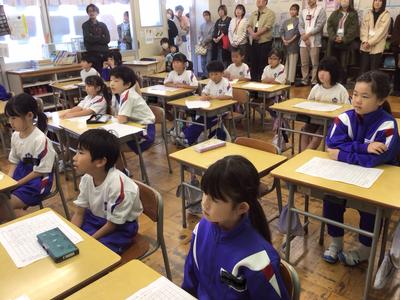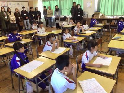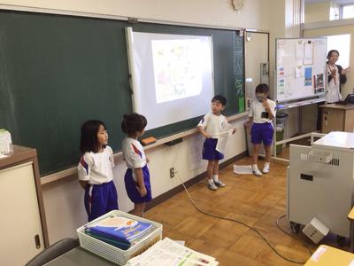今日は学校公開となっています。土曜日ということもあり、朝早くからたくさんの保護者の方々がお見えになられています。1時間目の1年生の活動の様子です。