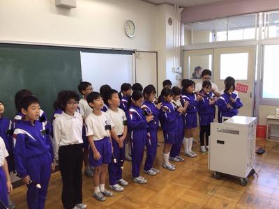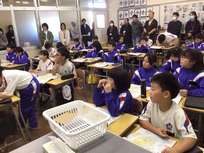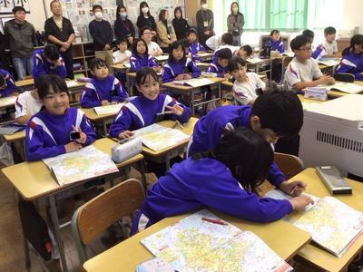 3時間目の3年生の活動の様子です。地図帳を使った地名探しの後、総合の調べ学習の発表を行い、リコーダーの演奏と合唱を披露しました。