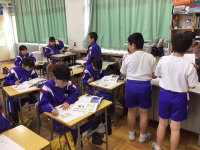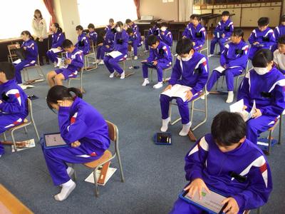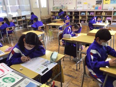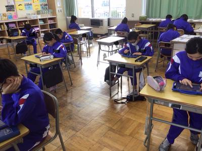 2時間目の各学年の様子です。1年生 国語、2年生 体育、3年生 国語、4年生 社会、5年生 理科(テスト)、6年生 音楽の時間でした。