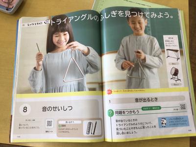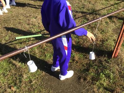 3年生の理科の授業の様子です。紙コップに糸をつなげて、音が伝わる時、音を伝えるものは震えているのかを中庭に出て調べていました。