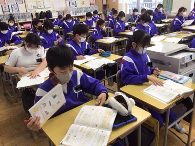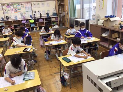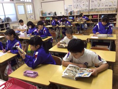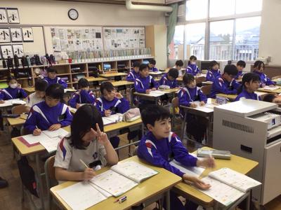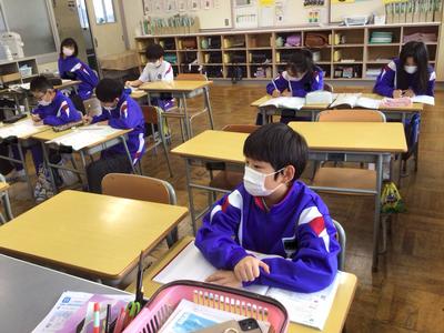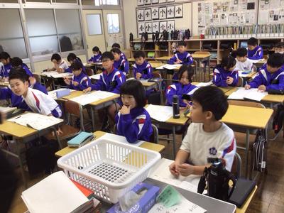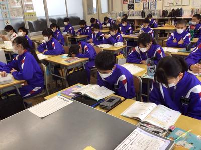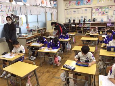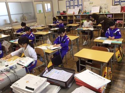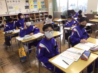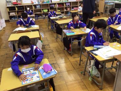11月最後の授業日。1時間目の各学年の様子です。1年生 国語(テスト)、2・3年生 算数、4年生 図工、5・6年生 算数の時間でした。