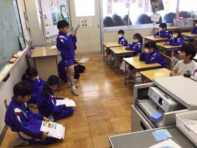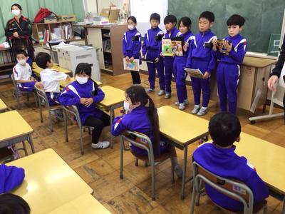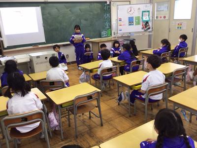 4時間目に3年生が1年生教室に出向き、お薦めの本の紹介を行いました。1年生は、3年生の先輩の発表を食い入るように聞いていました。是非、図書室に行って、お薦めの一冊を手に取ってみてくださいね。