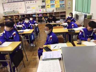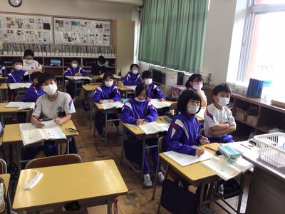 2時間目の各学年の様子です。1年生 生活科、2年生 体育、3年生 国語、4年生 外国語活動、5年生 算数、6年生 国語の時間でした。
