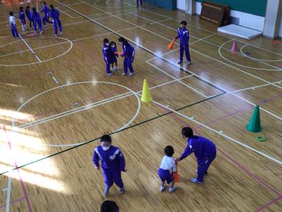 1時間目に体育館にて1年生と6年生の交流活動が行われました。1年生に喜んでもらおうと6年生が考えたいくつものゲーム遊びを学年を隔てて仲睦まじく楽しんでいました。1年生が6年生と過ごす神山小学校での生活も残り50日ちょっととなってしまいました。この時間もお互いにとって思い出の1ページになったことと思います。
