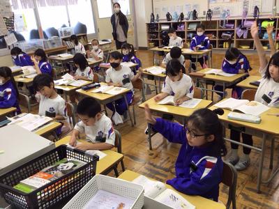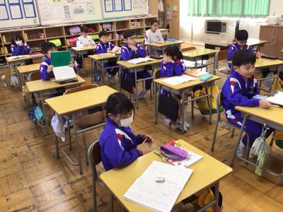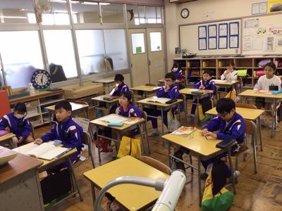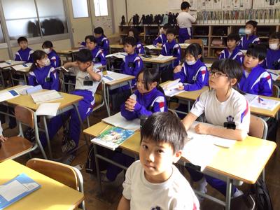 2時間目の各学年の様子です。1年生 道徳、2年生 国語、3年生 道徳、4年生 体育、5年生 国語、6年生 社会の時間でした。