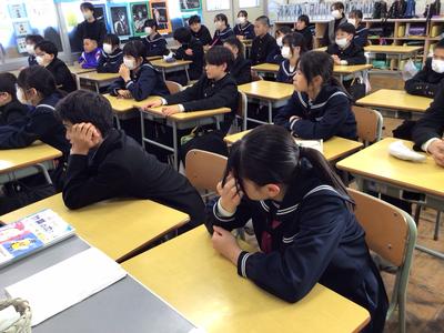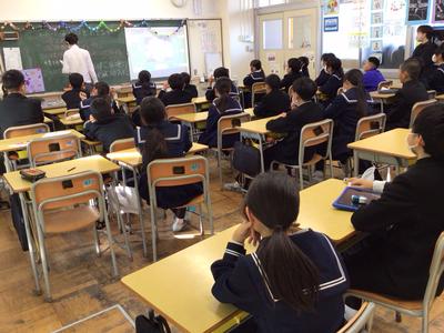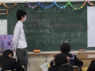 5時間目に6年生と対象に学校薬剤師の先生による薬物乱用防止教室が開かれました。違法薬物の使用だけでなく、タバコやお酒の依存性についてや市販の医薬品によるオーバードーズの恐ろしさについても専門的なお話をしていただきました。みんな真剣に聞き入っていました。