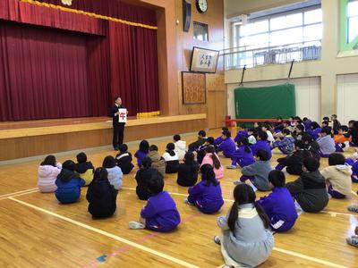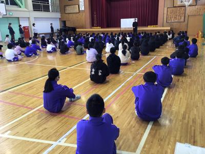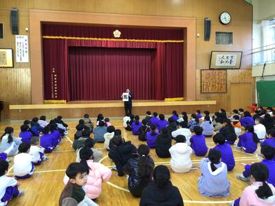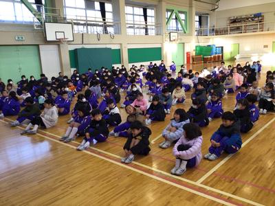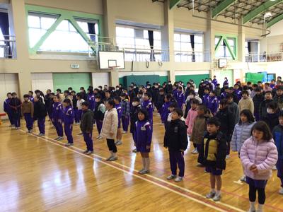 長いと思っていた2学期もいよいよ最終日となりました。かなり冷え込んだ朝ではありましたが、各自が防寒対策を施しながら全校児童が体育館に集まり終業式が行われました。校長の話の後、校歌を斉唱し、生徒指導担当の先生から冬休み中の注意を聞きました。明日からの冬休みが充実したものになることを願っています。