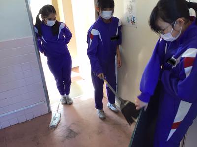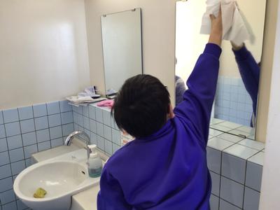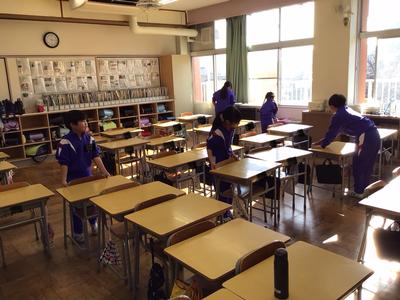 2学期最終日ということでいつもより10分長い20分間の大掃除の時間が設けられました。普段より拭く回数を増やしたり、ロッカーの後ろや棚の中など普段は手が届かない所まで綺麗にしたりするなど念入りに掃除をしました。お陰で気持ちよく新年を迎えられそうです。