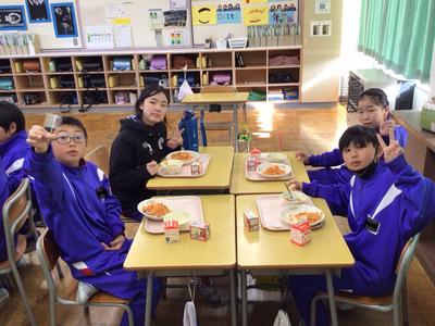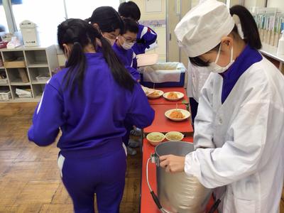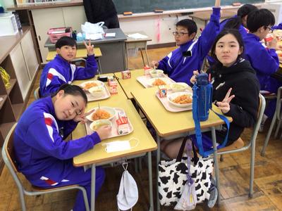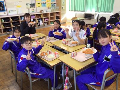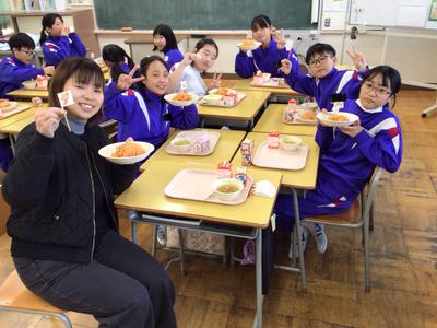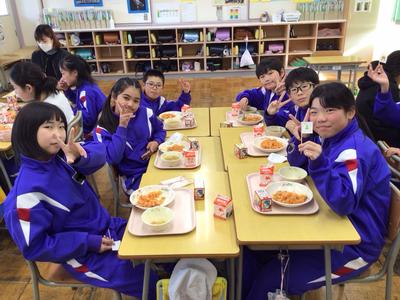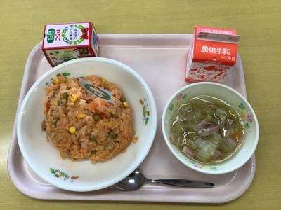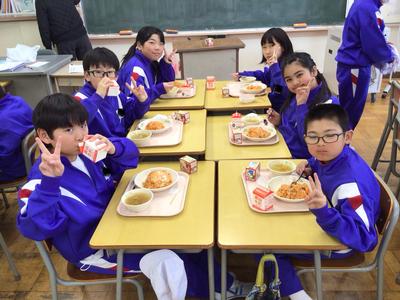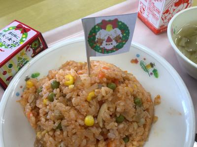 2学期最後の給食は省塩(塩分少なめ)・クリスマス献立で、チキンライス、野菜スープ、牛乳、クリスマスケーキでした。クリスマスケーキは、チョコレートケーキかいちごケーキかの選択でした。全員のチキンライスには調理員さん手作りのクリスマスらしい旗が立っていました。調理員さん、2学期も安心安全で美味しい給食をありがとうございました。