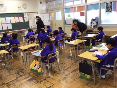 授業も本格的に始まっています。1時間目の1~3年生の様子です。1年生 発育測定・保健指導、2・3年生 算数の時間でした。