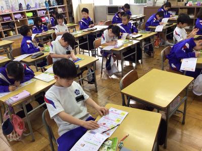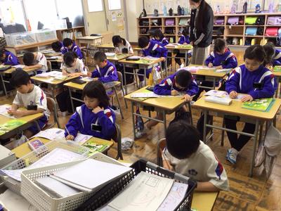 2時間目の1~3年生の様子です。1・2年生 国語、3年生 理科の時間でした。