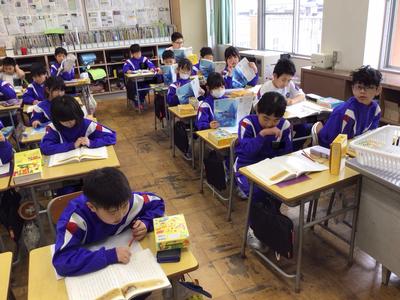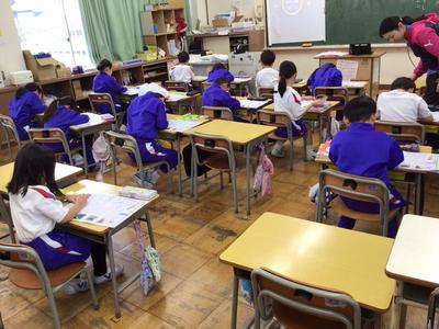 2時間目の1~3年生の様子です。1年生 国語、2年生 体育、3年生 国語の時間でした。