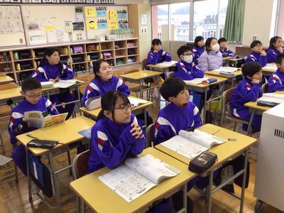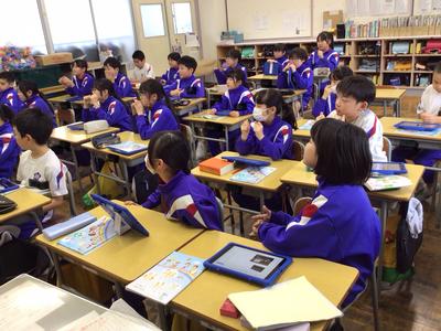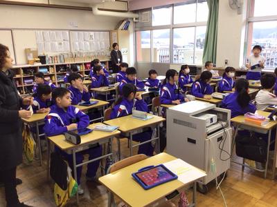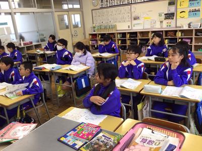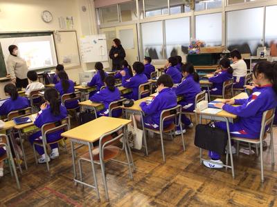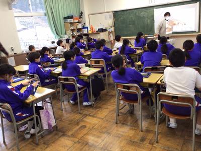 3時間目の4~6年生の様子です。4年生 外国語活動(ALT訪問)、5年生 家庭科、6年生 体育の時間でした。