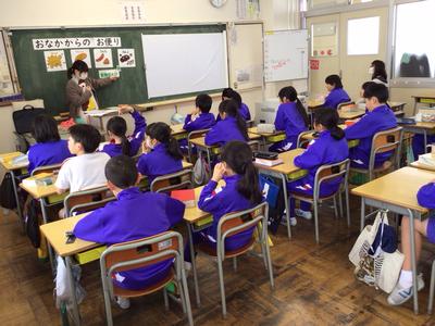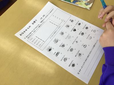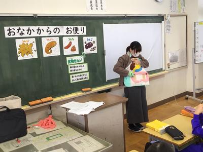 栄養教諭による食に関する指導が4年生で行われました。今日は「おなかからのお便り」というテーマで、食べ物に含まれる食物繊維の働きを中心に学ぶことができました。