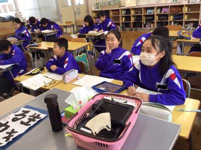 2時間目の4~6年教室の様子です。4・5年生 算数、6年生 社会の時間でした。