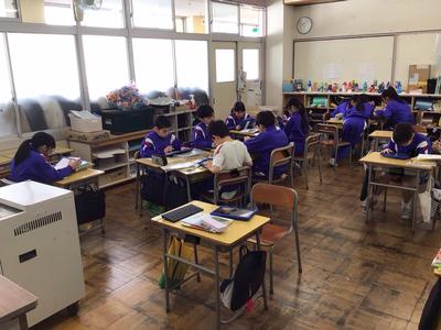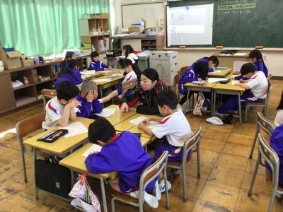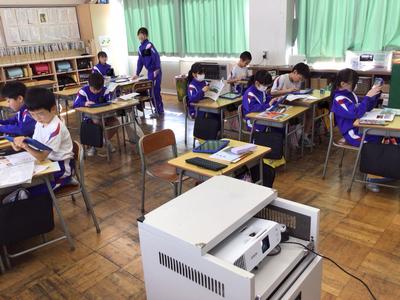 3時間目の各学年の様子です。1年生 生活科、2年生 国語、3年生 音楽、4年生 社会、5年生 体育、6年生 理科(テスト)の時間でした。