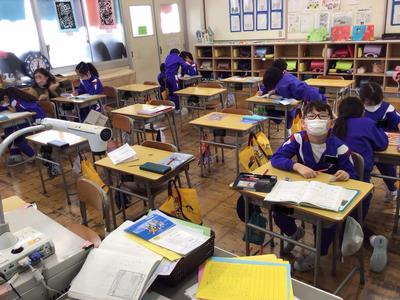 2時間目の1~3年生の様子です。1年生 生活科、2年生 算数、3年生 外国語活動の時間でした。