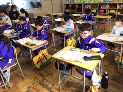 3時間目の1~3年生の様子です。1年生 生活科、2年生 国語、3年生 音楽の時間でした。