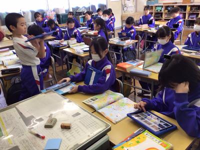 3時間目の4~6年生の様子です。4年生 社会、5年生 体育、6年生 算数の時間でした。