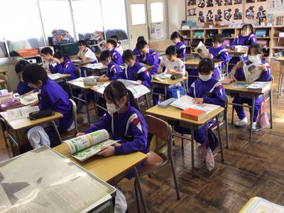 3時間目の4~6年教室の様子です。4年生 理科、5年生 社会、6年生 外国語の時間でした。