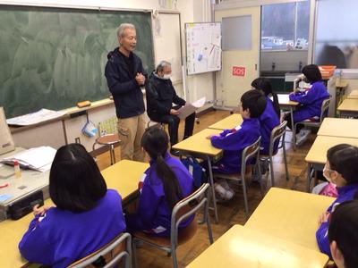 日頃からお世話になっている見守り隊のみなさんと用務員さんへの感謝のつどいが行われました。前半は各学年の教室にて、感謝の気持ちを伝え、メッセージカードをプレゼントしました。後半は校長室にて、6年生が手作りしたハンカチをお渡ししました。見守り隊の皆様のおかげで、この一年間大きな事故や事件がなく、安全・安心して登校することができています。雨の日も雪の日も風の強い日も、子どもたちのためにありがとうございます。また、用務員さんには校舎や校地の美化や営繕、米作りや野菜作りに携わっていただいています。いつもありがとうございます。