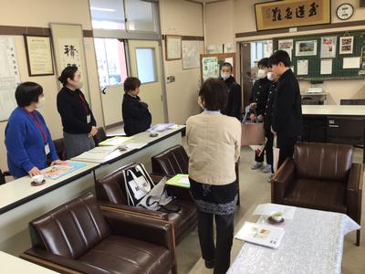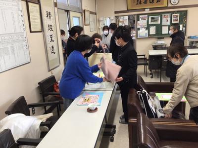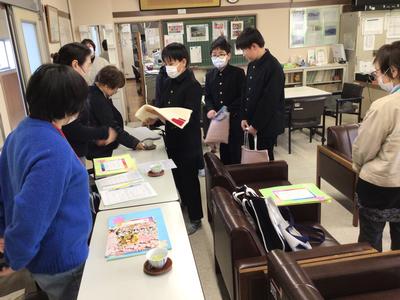 月に2回行われてきた読み聞かせが今日で本年度最後となりました。各教室でお礼を述べた後、校長室にて6年生から6年間の感謝の言葉を添えて、ボランティアの方々に手作りトートバッグをプレゼントしました。大きな本もすっぽり入る利便性の良い、可愛いバッグにボランティアのみなさんは大喜びの様子でした。読み聞かせボランティアのみなさん、一年間ありがとうございました。