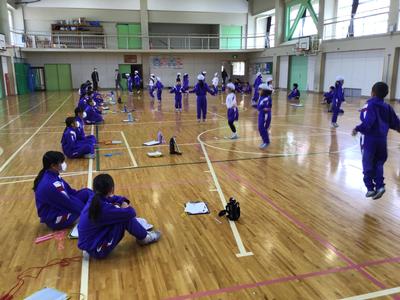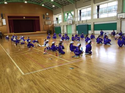 1年生と6年生がなわとび交流会を開催しました。1年生のなわとび記録会を兼ねて行い、6年生が回数を数えてくれました。また、1年生の休憩の間には6年生が模範となる跳び方を披露してくれました。卒業まで1週間を切った6年生ですが、最後まで最上級生としての活躍を見せてくれました。