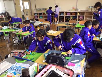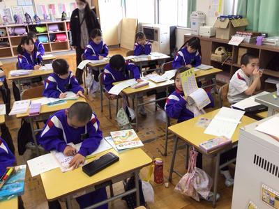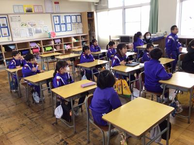 3時間目の各学年の様子です。1年生 算数、2年生 生活科、3年生 音楽、4年生 外国語活動、5年生 図工の時間でした。