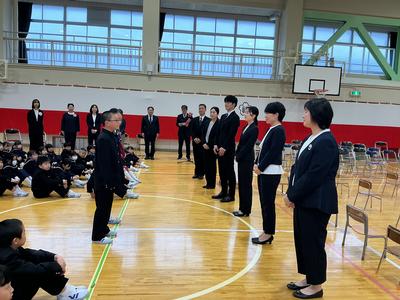 新任式では、今年度、新たに本校に赴任となった6名の教職員を温かく迎え入れることができました。その後、1学期始業式を行い、その中で担任発表も行いました。持ち上がりや新しい担任など様々でしたが、とても盛り上がりました。