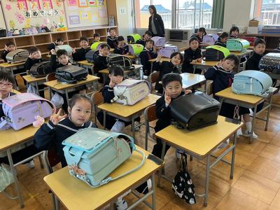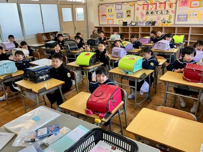 1年生教室の様子です。ピカピカの笑顔とカラフルなランドセル。みんな元気に登校できたようで何よりです。小学校生活を楽しんでくださいね。