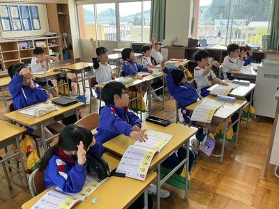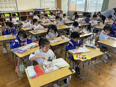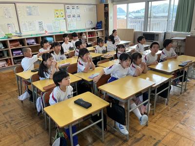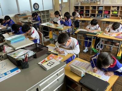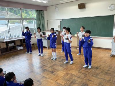 2時間目の各学年の様子です。1・2年生 生活科、3年生 国語、4年生 体育、5・6年生 応援練習の時間でした。5月16日の校内体育大会に向けて、高学年は少しずつ準備を始めています。