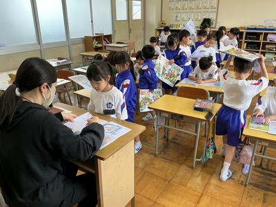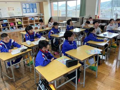 2時間目の1~3年生の様子です。1年生 国語、2年生 道徳、3年生 外国語活動の時間でした。