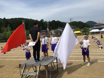 体育大会の予行練習真っ只中です。まずは、開会式の様子です。