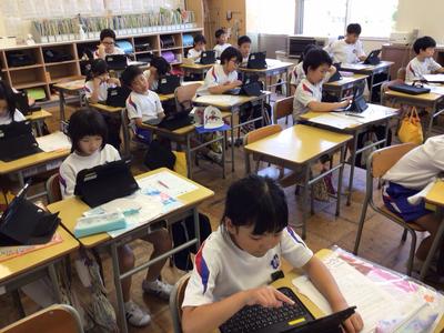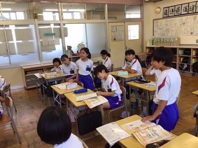 5時間目の授業の様子です。1年生 体育、2年生 音楽、3年生 タブレットを使った質問紙調査、4年生 図画工作、5年生 英語、6年生 算数の時間でした。