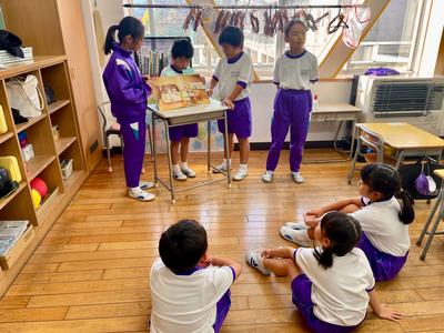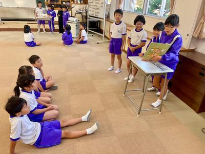 国語の学習のまとめとして、3年生が1年生に読み聞かせをしました。読むだけでなく、おすすめの場面も紹介していましたよ。