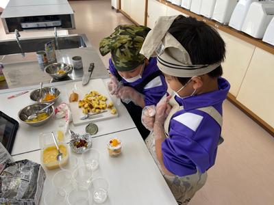 なかよし学級のみなさんが『クリスマスケーキ』をつくっていました。カステラを切って、自分でトッピング!一足早いメリークリスマス!です。