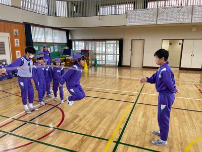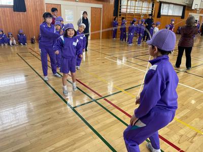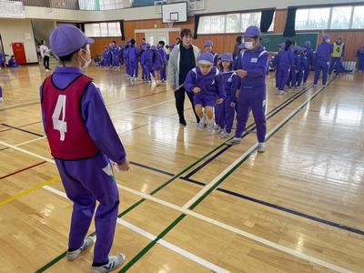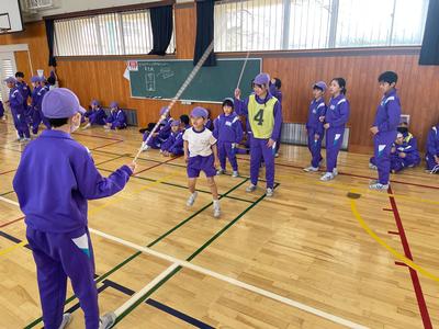 『たてわり班対抗 8の字跳び大会』が開催されました。跳んだ回数は『グループ対抗』に加え、合計して『白組VS赤組』の勝負にもなります。さあ!どちらが勝つでしょうか!