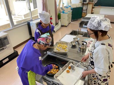 今日の給食は、コッペパン、牛乳、ポテトとハムのサラダ、コーンポタージュ、にぼしです。コーンポタージュに使われる『ベシャメルソース』のいい香りが、2校時から漂っていました!