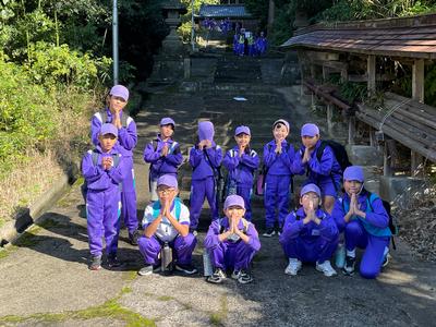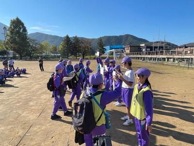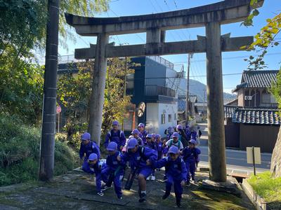 びっくりするくらいいい天気のもと、昨年度から始まった『第2回北日野っ子ウォークラリー』が開催されました。たてわり班ごとにくじを引き、コースが決まります。昨年は『東8コース』をセッティングしたので、今年は『西8コース』です。通称『矢放神社』では、『神社にまつわるクイズ』と『全員で手をつないで何秒で階段を駆け上がるか?』というミッションがありました。帆山公園では『全員で遊具を渡りきる』というミッションがありました。