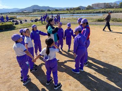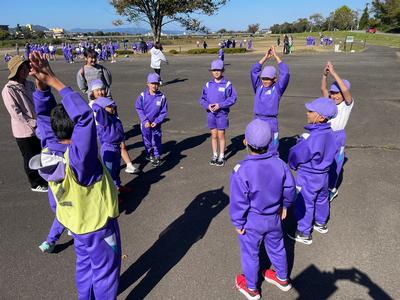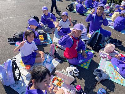 おいしいお弁当の後は、6年生が考えた『たてわりあそび』です。青空のもと、異学年が楽しそうに交流する姿を見ると、こちらまで楽しくなります。今日はみんな疲れたことでしょう。早めに寝ましょう。
