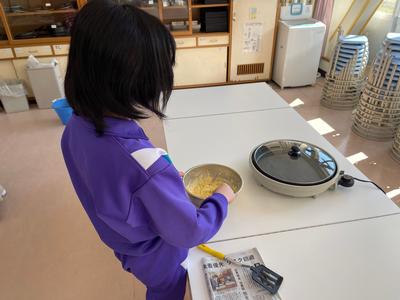 今日は4回目の『ほっとクッキング』、『さつまいも入りパンケーキ』をつくりました。旬の野菜を上手にスイーツに生かしました。