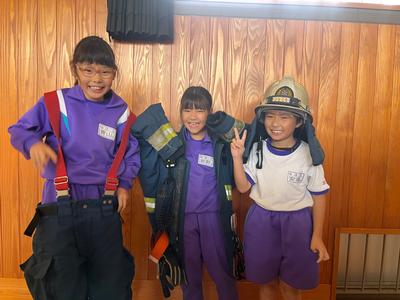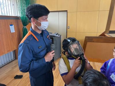 東消防署の方をお招きし『消防署のはたらき』について教えていただきました。酸素ボンベや防火服まで着せていただきました。私たちの安全を守ってくれるお仕事です。しっかりと学びましょう!