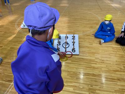 市内3校の特別支援学級の交流会がありました。『スカットボール』や『ストラックアウト』『わなげ』など、ニュースポーツを通してすぐに仲良くなっていました。