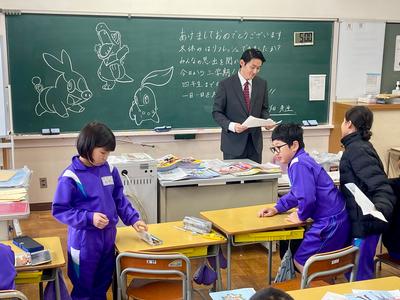 始業式の後、2年生では『さいころトーク』の準備をしていました。『冬休みにもどりたい人はスタートに戻る』という厳しいマスがあります。