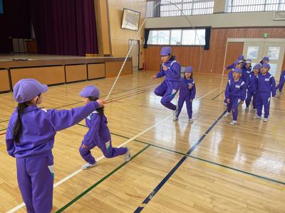 2年生が準備運動として『8の字跳び』に取り組んでいました。2年生にもなると、なかなか上手です。『全校8の字跳び大会』まで、あと2週間です!(体育時はマスク着用はしていません)