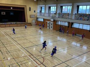 体力を高める運動として、陣地取りをしました。自分の陣地にミニコーンを集めるために、一生懸命走っている子どもたちでした。