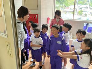 1年生は、生活科の時間に、学校探検をしました。今日は、1階を回りました。子どもたちは、職員室の中を不思議そうに見ていました。