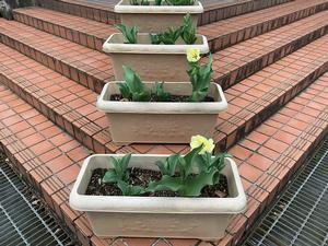 令和8年度が始まりました。学校は、ひっそりしていますが、子どもたちを迎える準備をしています。校庭の桜も満開です。玄関のチューリップも咲き始め、子どもたちが登校するのを待っています。