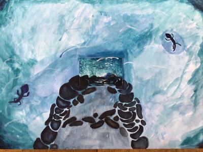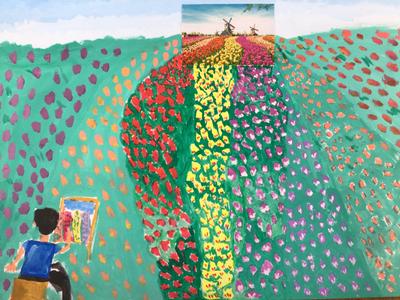 5年生が図工で『まだ見ぬ世界』に取り組んでいました。一枚の小さな写真から想像を膨らませ、まだ見ぬ世界へ一歩を踏み出す作品です。